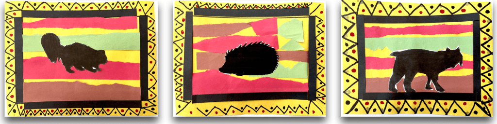 Imprimer et couper les images d’animaux en double, format env. 3 x 5,5 (1 par élève).