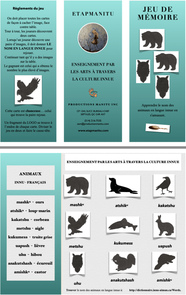 1. Apprendre le nom de tous les animaux en langue innue (jeu de mémoire).