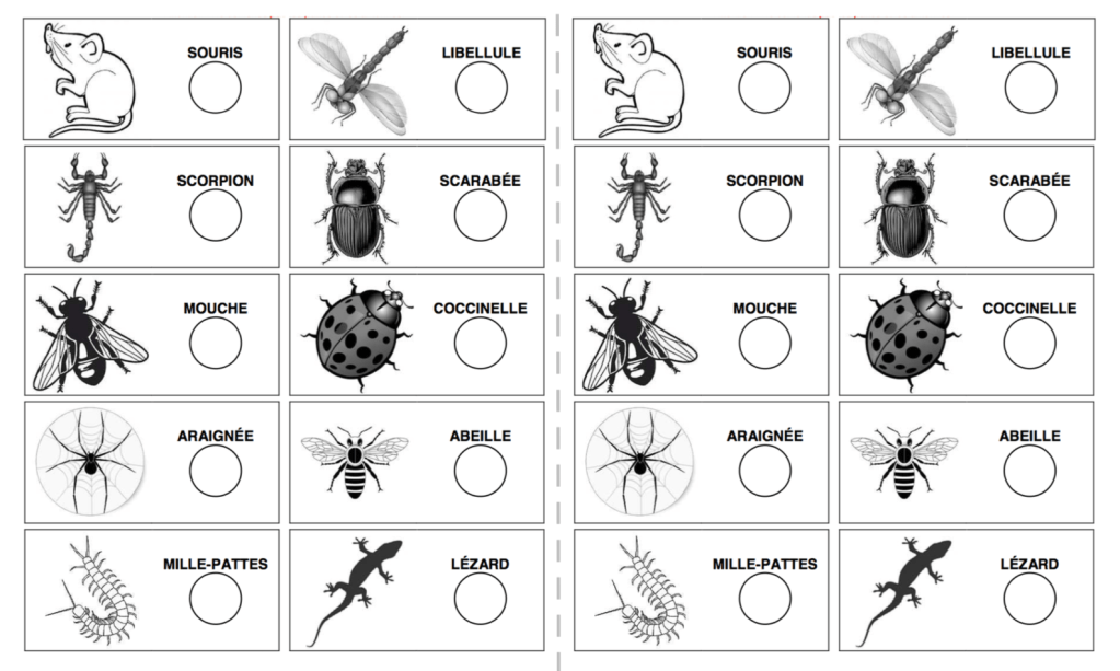 – une photocopie du jeu de connaissances sur les insectes (1 par 2 élèves)