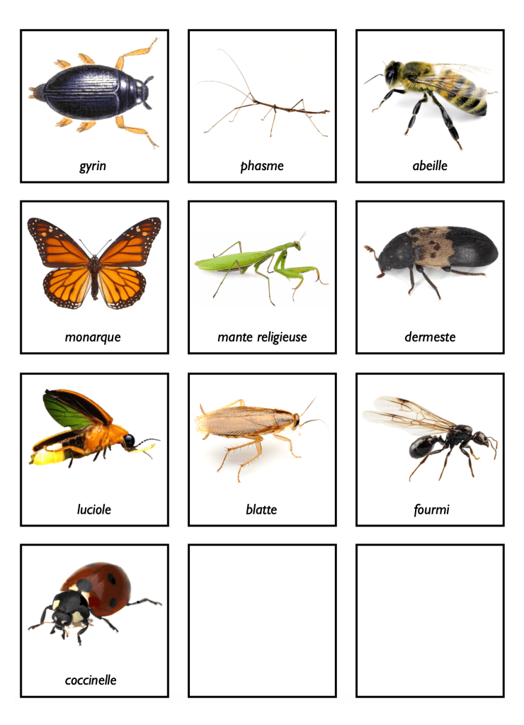Imprimer et couper le classement des insectes, format env. 3 x 4 po (1 par élève)