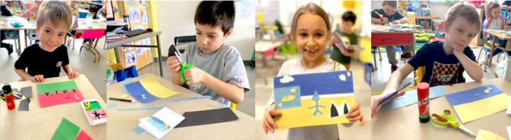 2. Réaliser une exposition : écrire le nom de l’élève ainsi que le nom de la saison en langue innue sur une petite carte ; fixer les réalisations au mur de la classe et placer sous chaque réalisation.