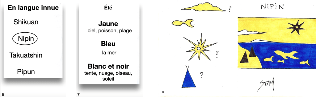 Page 6 : coller une photocopie des quatre saisons en langue innue ; entourer la saison choisie.