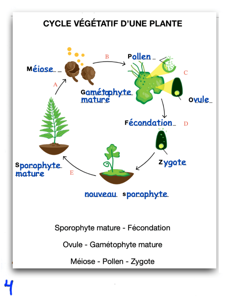 – le corrigé du cycle végétatif d’une plante pour consultation.