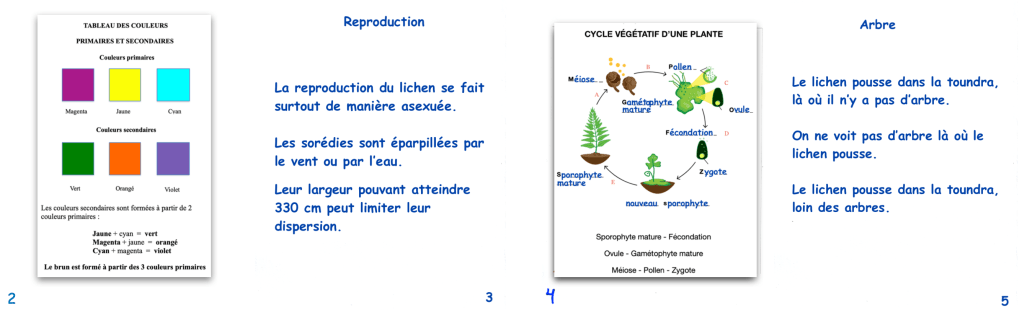Page 5 : écrire un mot en haut ; écrire une phrase descriptive d’une plante qui inclu ce mot.