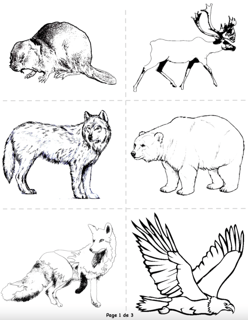 Imprimer toutes les images d’animaux (en double), format 8,5 x 11 pouces (2 par élève). Prendre en compte celles qui ont été retournées OU imprimer toutes les images retournées en double.