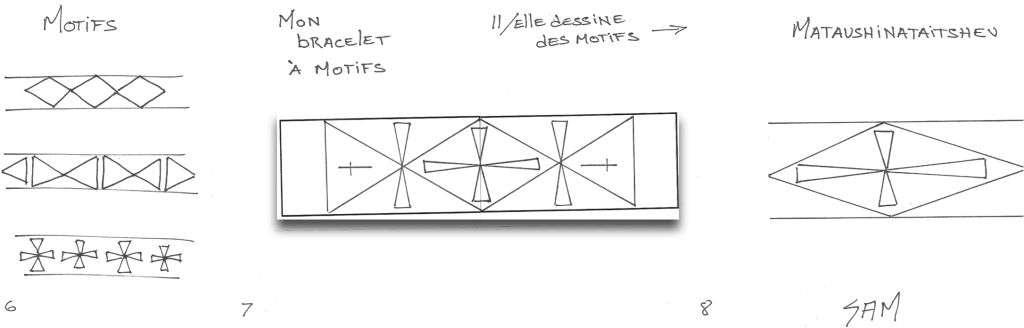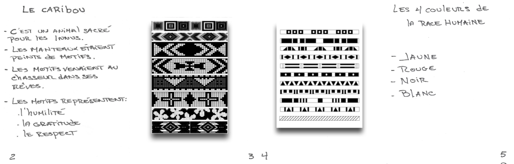 Page 4 : coller une photocopie d’un tableau de motifs simples issus de la culture innue.