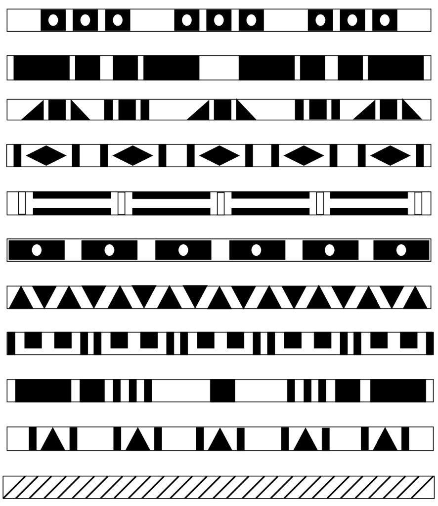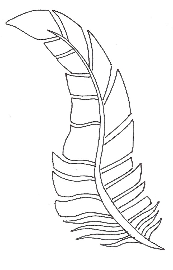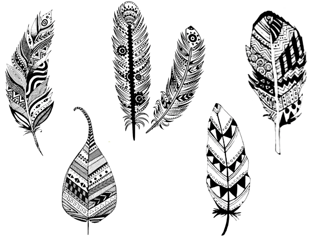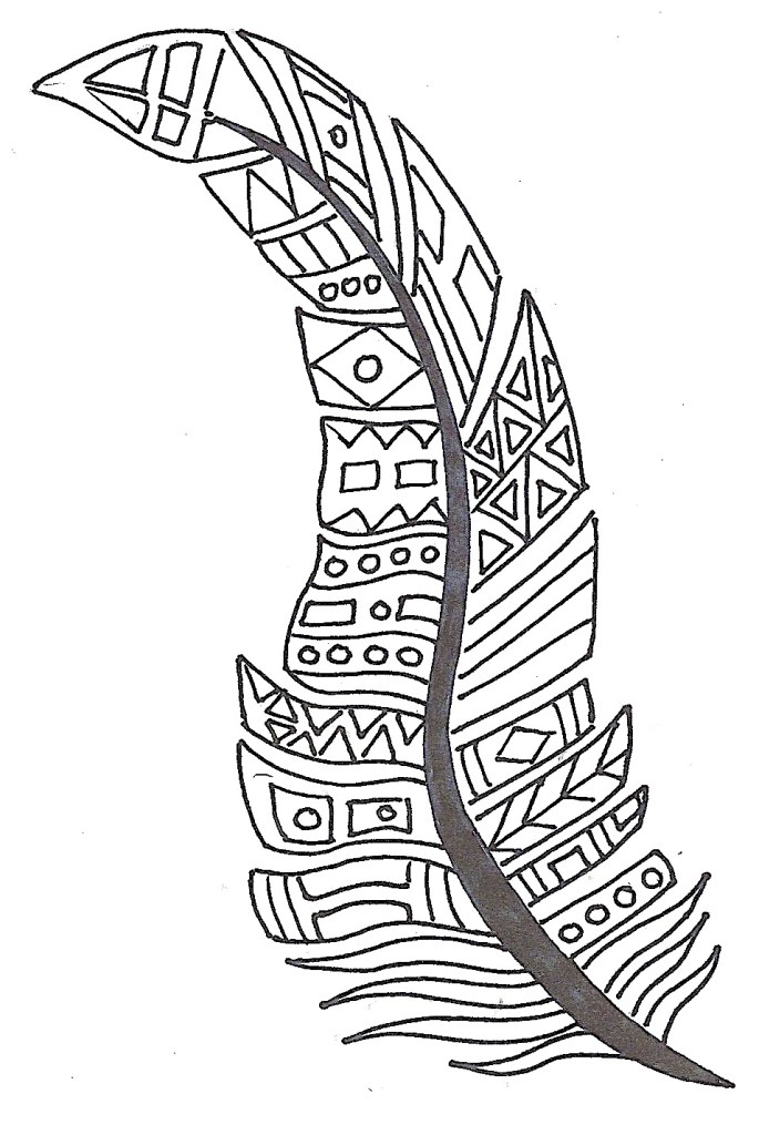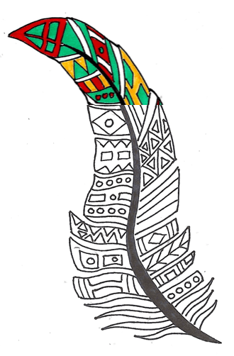 14. Consulter les motifs issus des Premières Nations (sur le TBI). Dessiner des motifs sur la plume au crayon à mine d’abord, puis retracer au crayon-feutre noir afin de remplir presque tous les espaces (on peut laisser des espaces blancs).