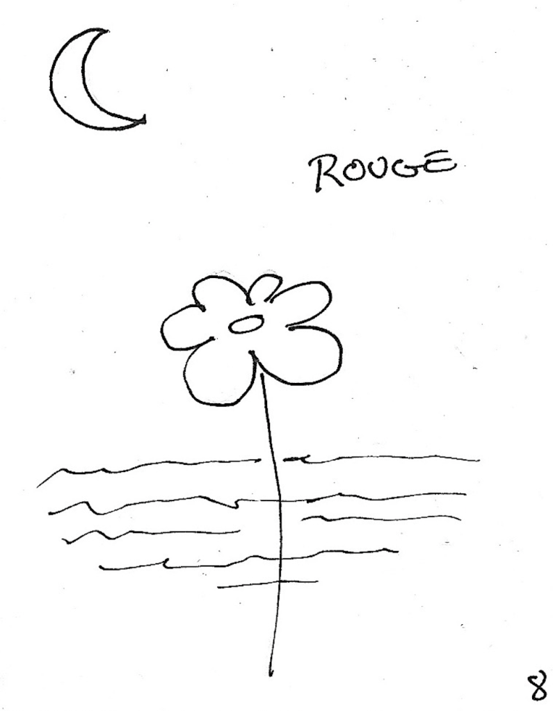 Page 8 : dessiner tous les éléments identifiés à la page 6 ; écrire le nom d’une couleur.