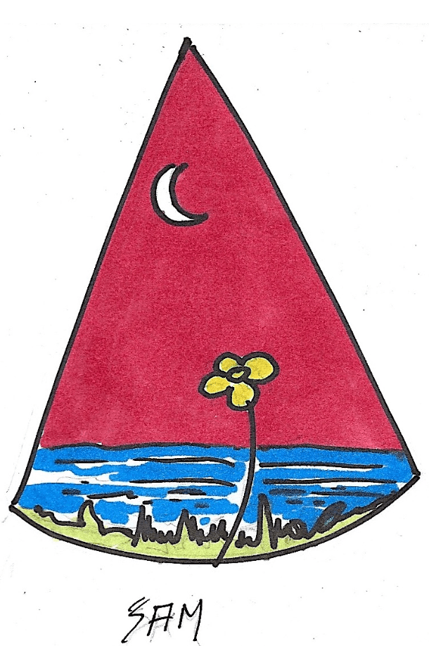 13. Démonstration — Dessiner son croquis à main levée au crayon à mine d’abord et retracer au crayon-feutre noir. ATTENTION : le triangle doit être dans le même sens que celui réaliser sur la page couverture.