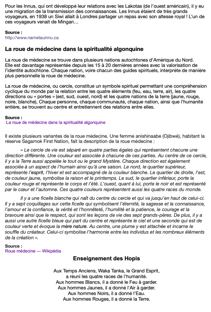 – le document sur la roue de médecine pour consultation