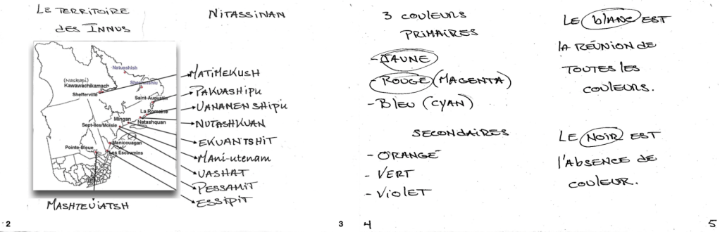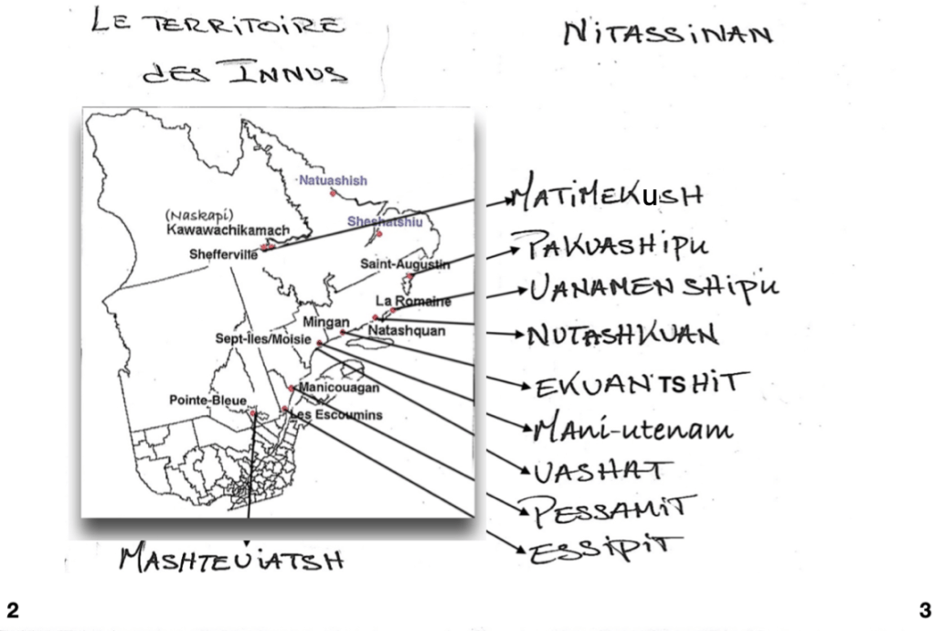 Page 3 : écrire le nom des dix communautés innues du Québec ; indiquer l’endroit exact de chacune par des flèches.